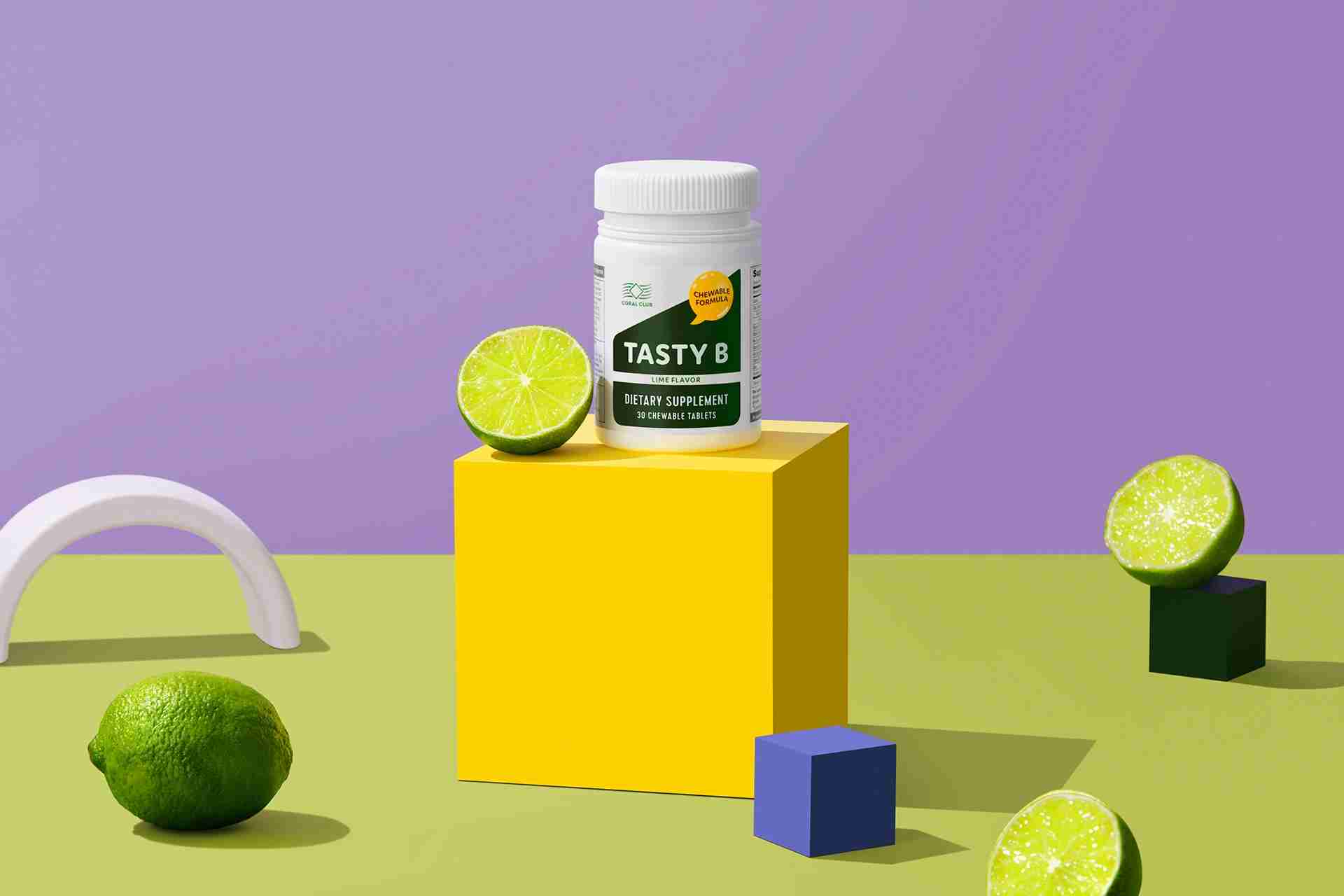 • Tasty B – chewable tablets with balanced B-Complex vitamins and lime pronounced flavor. This product will help to maintain the balance of B-group vitamins in the body. Vitamin B is very important for those who has unbalanced nutrition, increased level of anxiety, strenuous exercise, pernicious habits, frequent daily intake of caffeine.